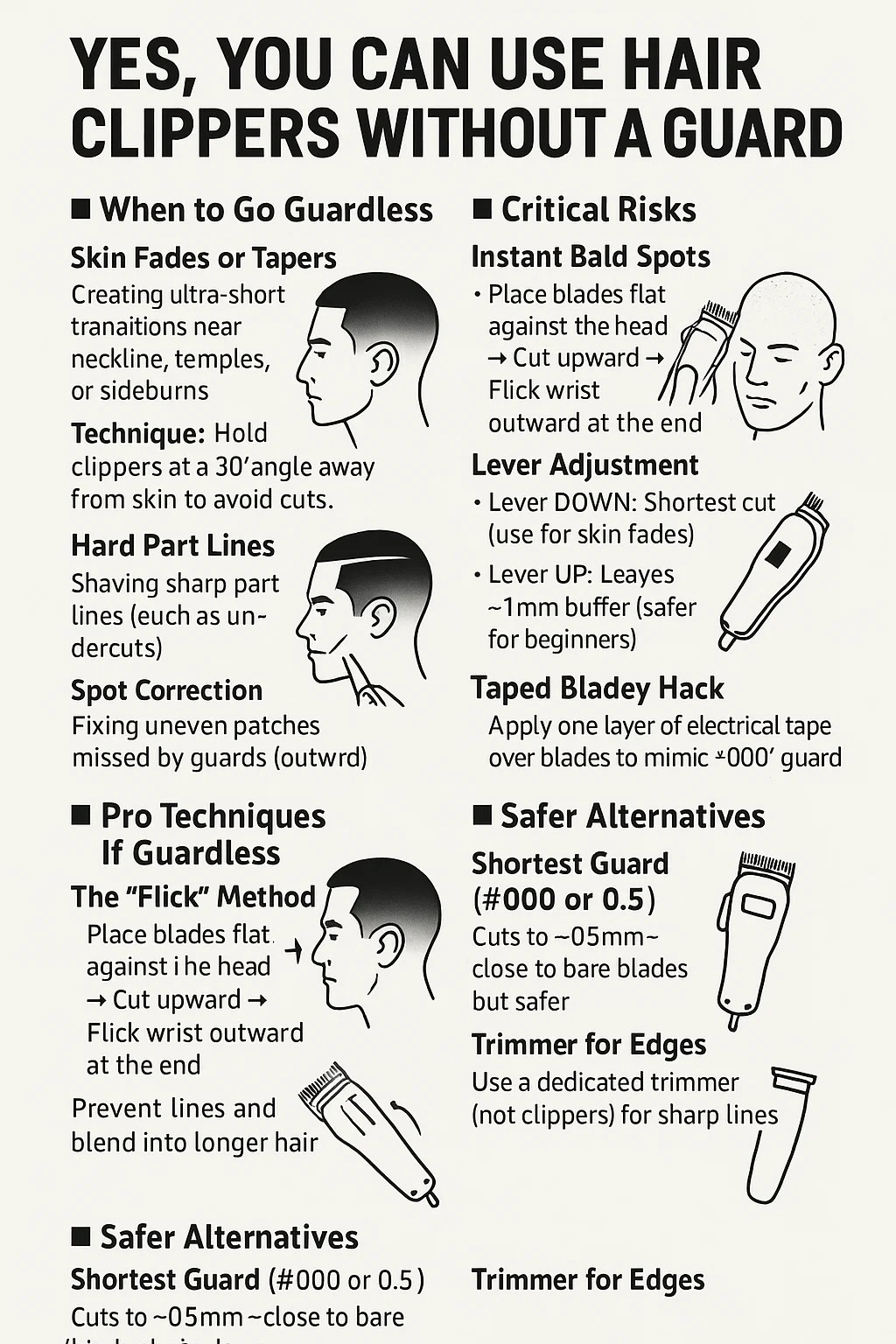 نعم، يمكنك استخدام كليبرز الشعر بدون حارس، لكنه يتطلب الحذر وتقنيات محددة. إليك ما تحتاج إلى معرفته: