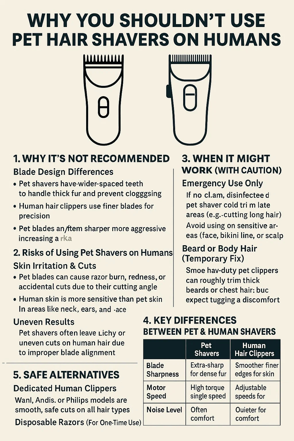 | ميزة | Pet Shavers | كليبرز الشعر البشري |