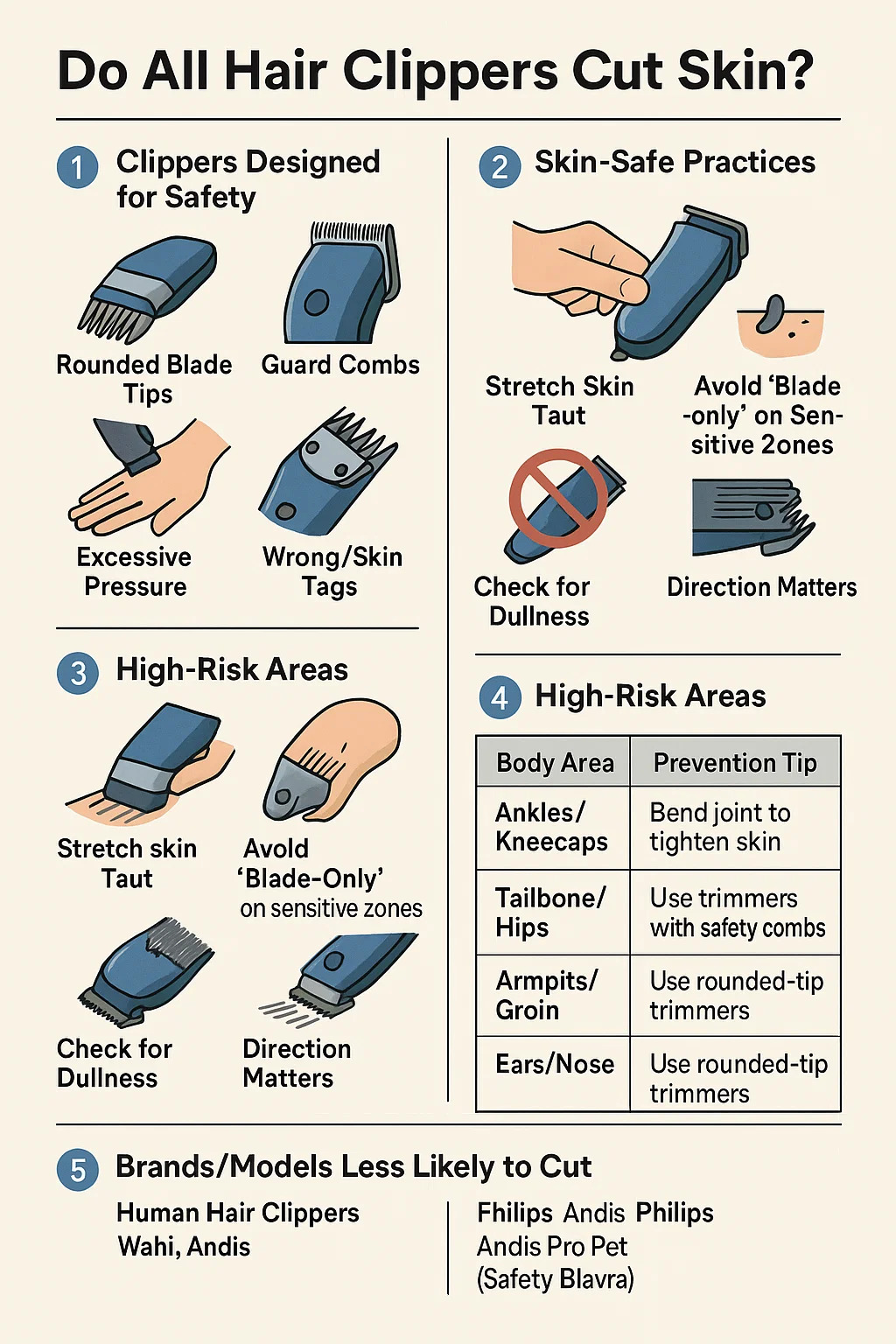 لا، ليس كل شيء كليبرز الشعر قطع الجلد، ولكن الاستخدام غير السليم أو الشفرات الباهتة أو عيوب التصميم يمكن أن تسبب شقوقًا أو تهيجًا. فيما يلي تفصيل تفصيلي: