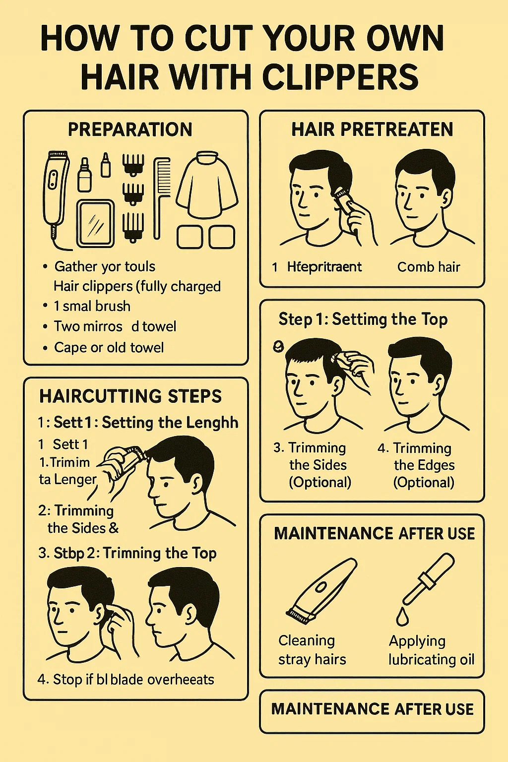 قص شعرك بنفسك كليبرز الشعر ليس بالأمر الصعب؛ يمكنك القيام بذلك بنفسك طالما أنك تتقن الخطوات والتقنيات الأساسية. إليك دليل بسيط وعملي: